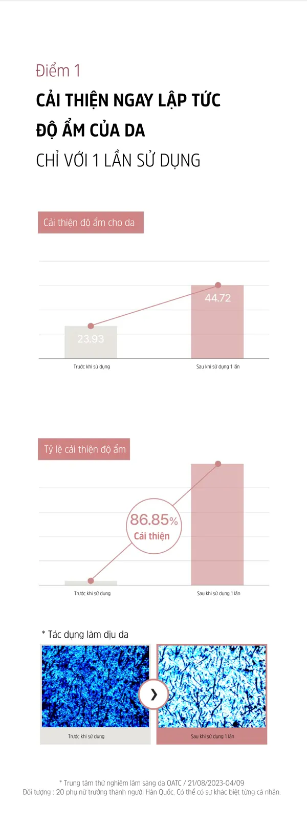 - Sản phẩm đã được chứng minh lâm sàng cải thiện độ ẩm cho da.