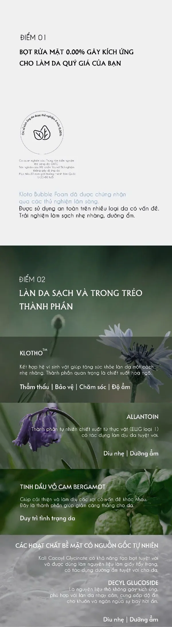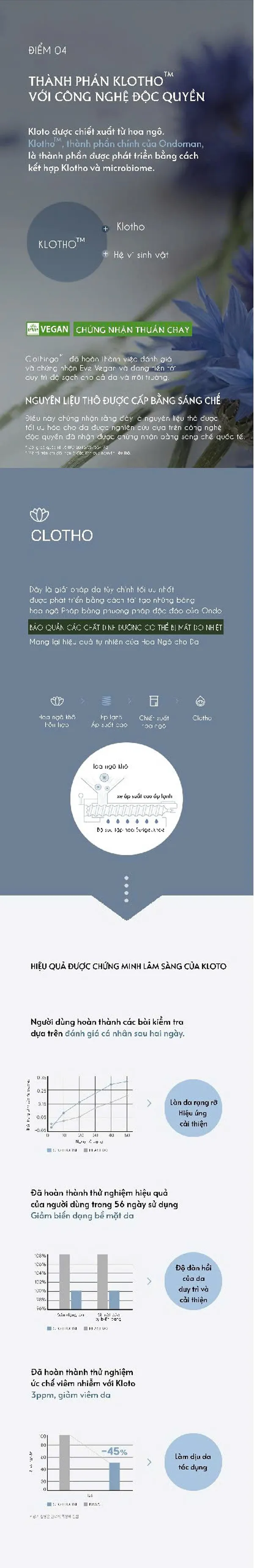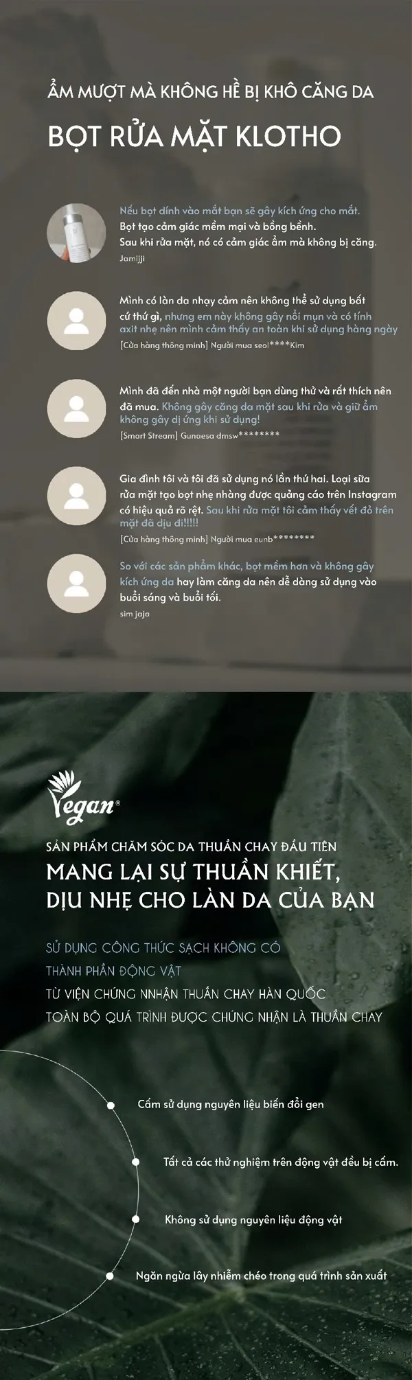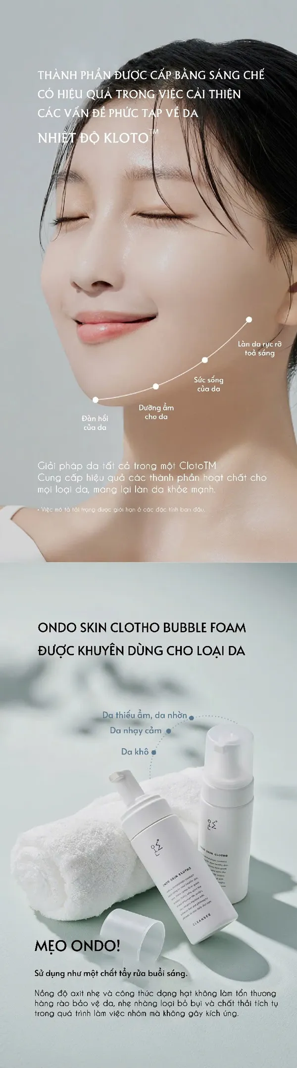 Sữa rửa mặt Ondo Skin Klotho là sữa rửa mặt thuần chay không gây kích ứng da. Độ ph 5,5-6 có tính axit nhẹ làm cho làn da bạn sạch sẽ cảm thấy thoải mái ngay sau khi rửa mặt. Giúp làn da ẩm mượt làm sạch mà không gây khô hay căng da. Tạo bọt tạo cảm giác mềm mại bềnh bồng khi sử dụng.
